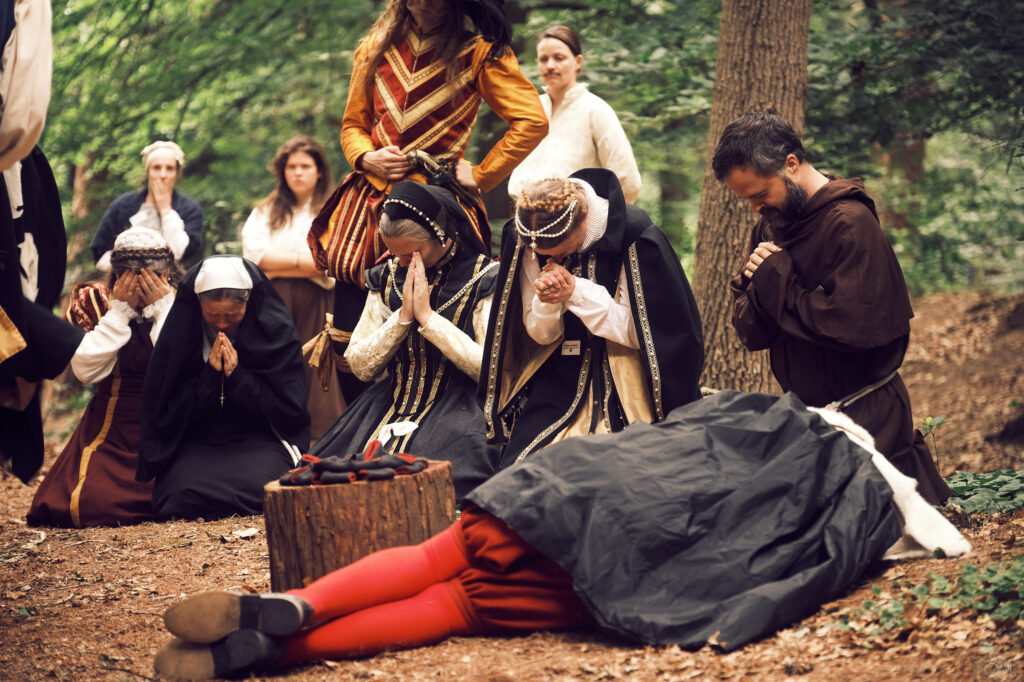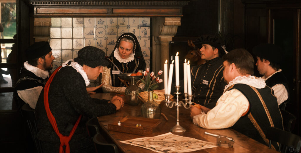 ”For God and Country’ is a LARP about the Dutch war of independence. Around the year 1570, the rebellious Dutch almost found themselves in the brink of open war with Spain, and Spanish-loyal countrymen. Important nobility, their servants and city regents meet each other to discuss the future. They take a group of Spanish-loyal countrymen hostage, who will be present in this all deciding meeting about the country’s future. ‘For God and country’ covers themes of religious fanaticism, the cost of war, and the power of propaganda. All characters also have personal storylines such as romances, vendetta’s or hopes to raise a family. The LARP has no written ending; the victors will truly write (alt-)history.